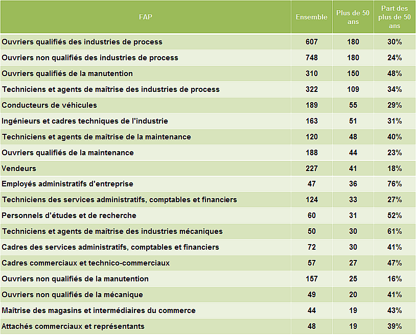 En 2011, dans la Somme, plus de 40% des postes (en CDI) du secteur sont occupés par des salariés âgés de plus de 45 ans (Source DADS 2011). Le vieillissement de ces actifs pourrait offrir des opportunités de recrutement dans les années à venir.